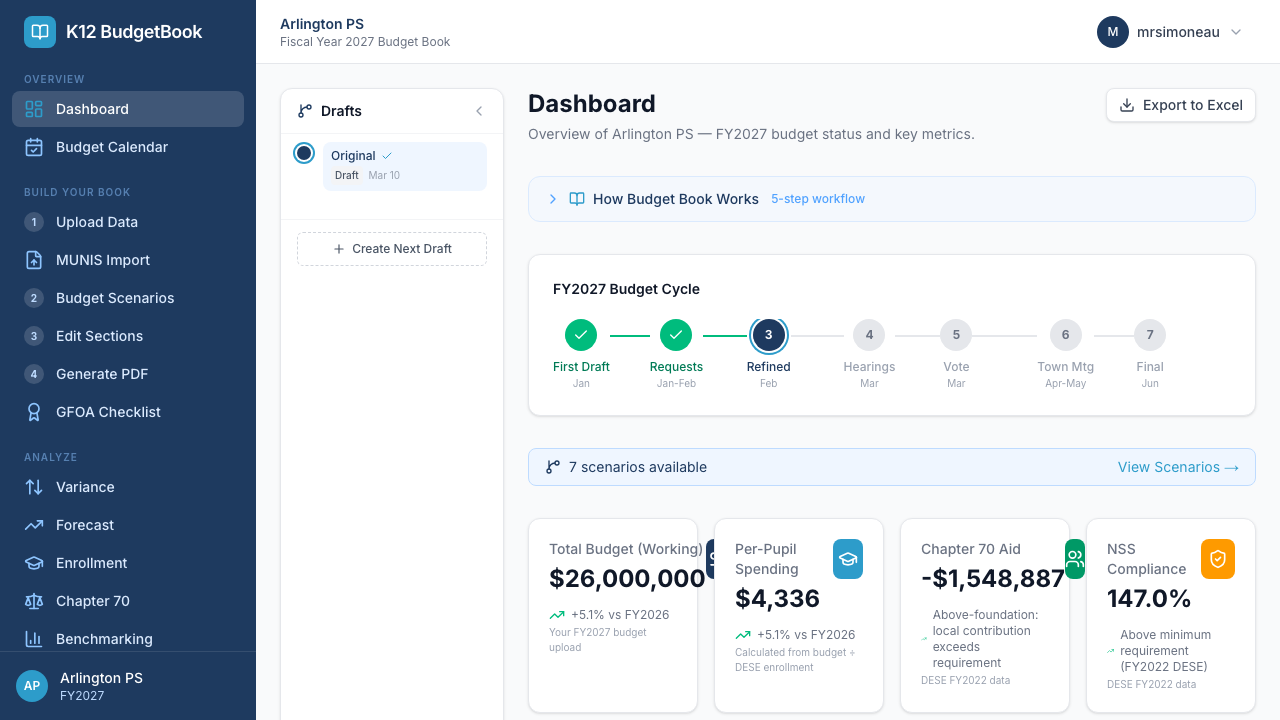 Every formula, every compliance rule, every data source — purpose-built for MA K-12.